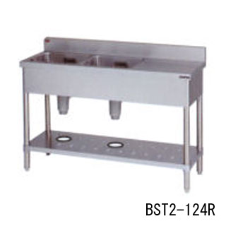 商品概要品名:二槽台付シンク・バックガードあり●外形寸法(間口×奥行×高さ×バック):1200×450×800×100×50mm●排水口:50A×2●備考:台部分が左側。