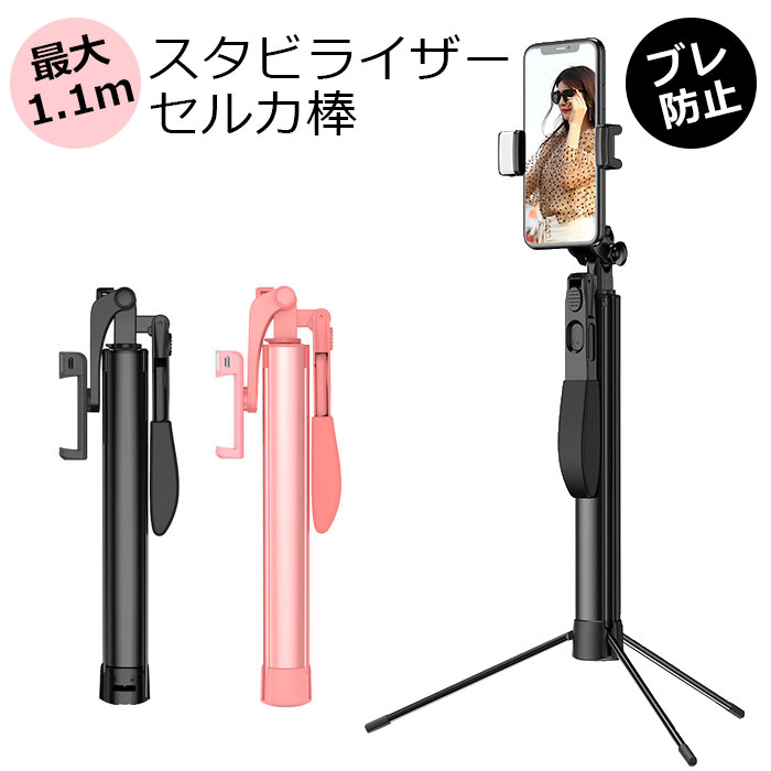 自撮り棒 三脚付き ブレ防止 スタビライザー 配信 iphone 撮影 スマホ スマートフォン 自撮り棒 三脚付き じどり棒 5段階伸縮 三脚 セルカ棒 セルフィー 最大1.1m 送料無料