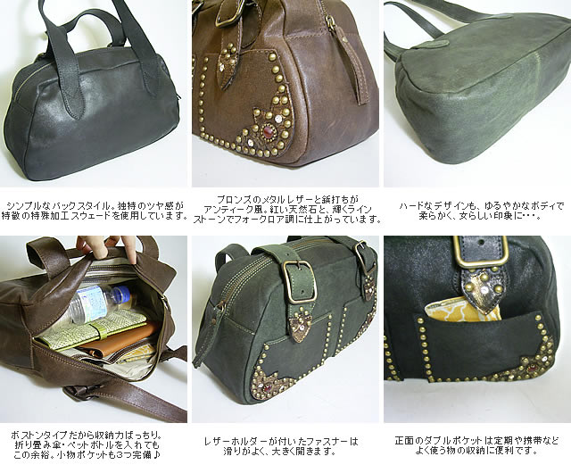 コレクションを見る「ゴージャス」ボストン登場!【ViViVee】イタリアブランド「ヴィ・ヴィ・ヴィー」ヴィンテージ風レザーボストンバッグ<ファーロ・ボストン> スタッズとラインストーンが奏でる無敵ボストン!スエードをあえてクラックさせてヴィンテージ感を出した雰囲気あるバッグ。