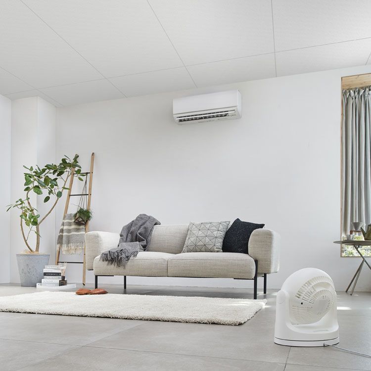 エアコンと併用して夏は冷気を部屋全体へ、冬は暖かい空気を足元へ循環し一年中使えます。