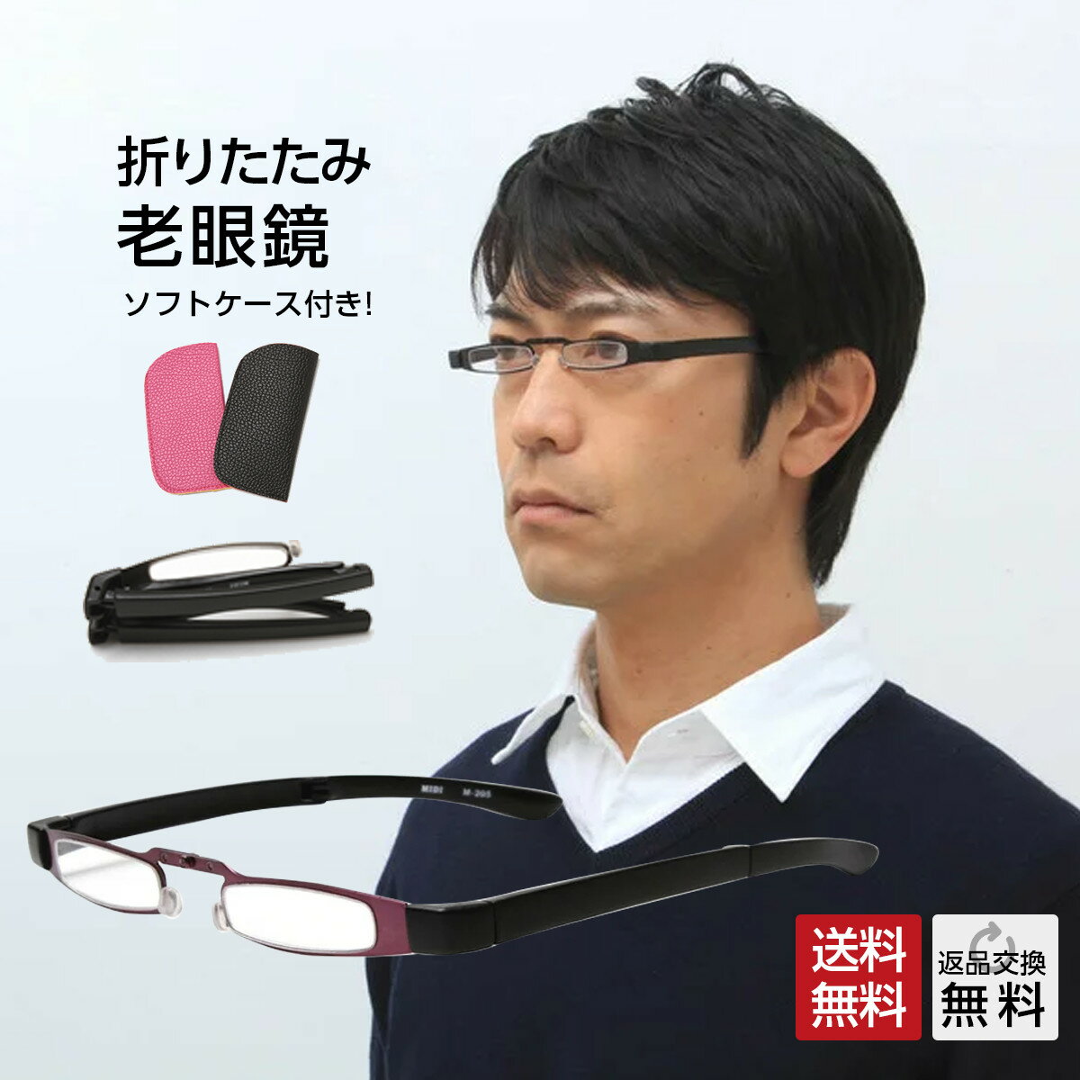 折りたたみ老眼鏡 紫外線カット99% 胸ポケットに入るコンパクトサイズ 男性用 女性用 メンズ レディース おしゃれ UVカット UV400 シニアグラス リーディンググラス ブラック&パープル ソフトケース付き
