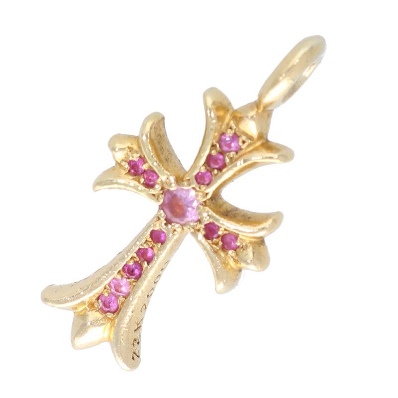 クロムハーツ 22k タイニーファットクロス ピンクサファイヤ 極美品【中古】