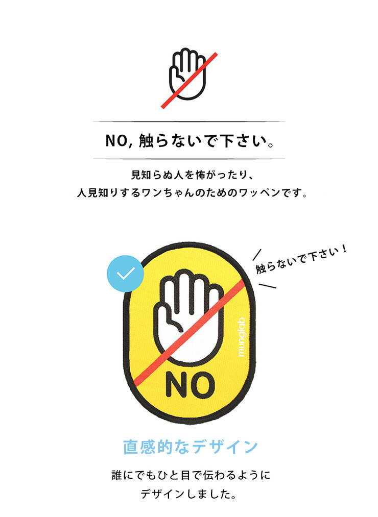 見知らぬ人を怖がったり、人見知りするワンちゃんのためのワッペンです。